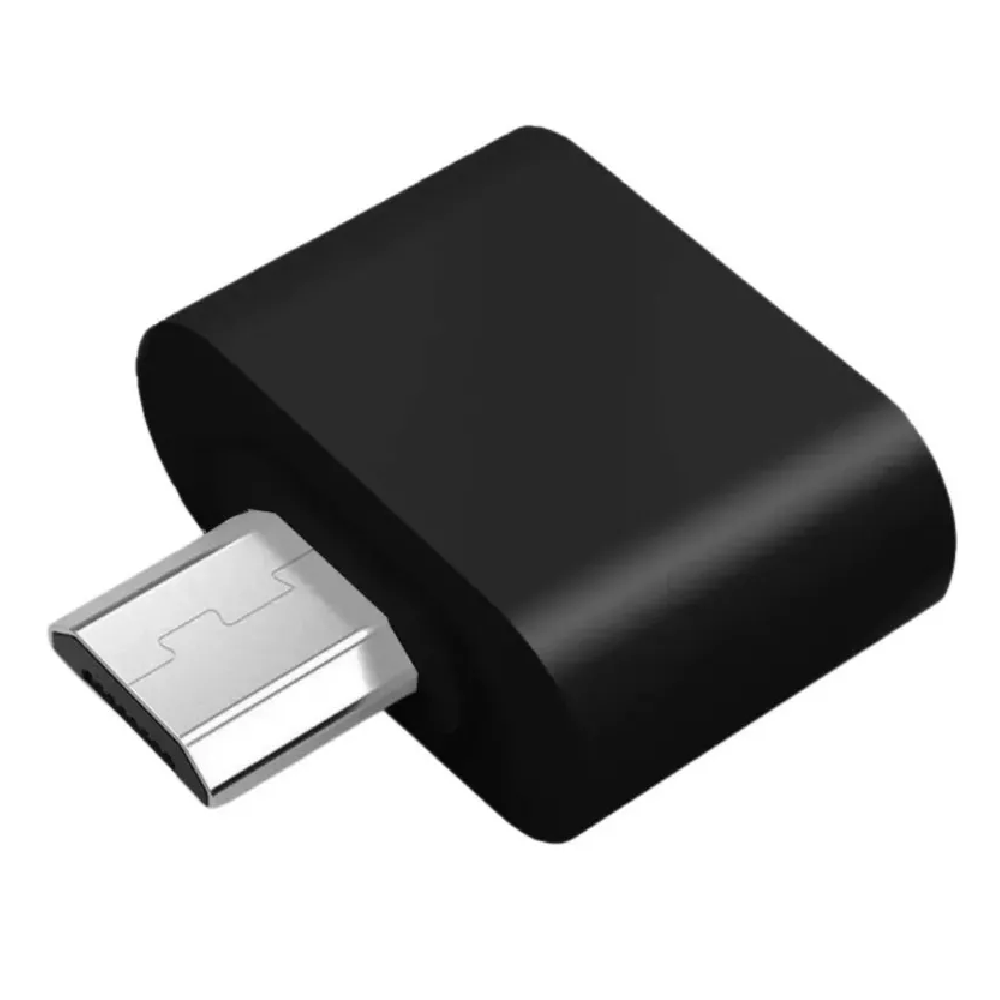 Adaptador OTG para conectar dispositivos USB en un puerto micro USB.
