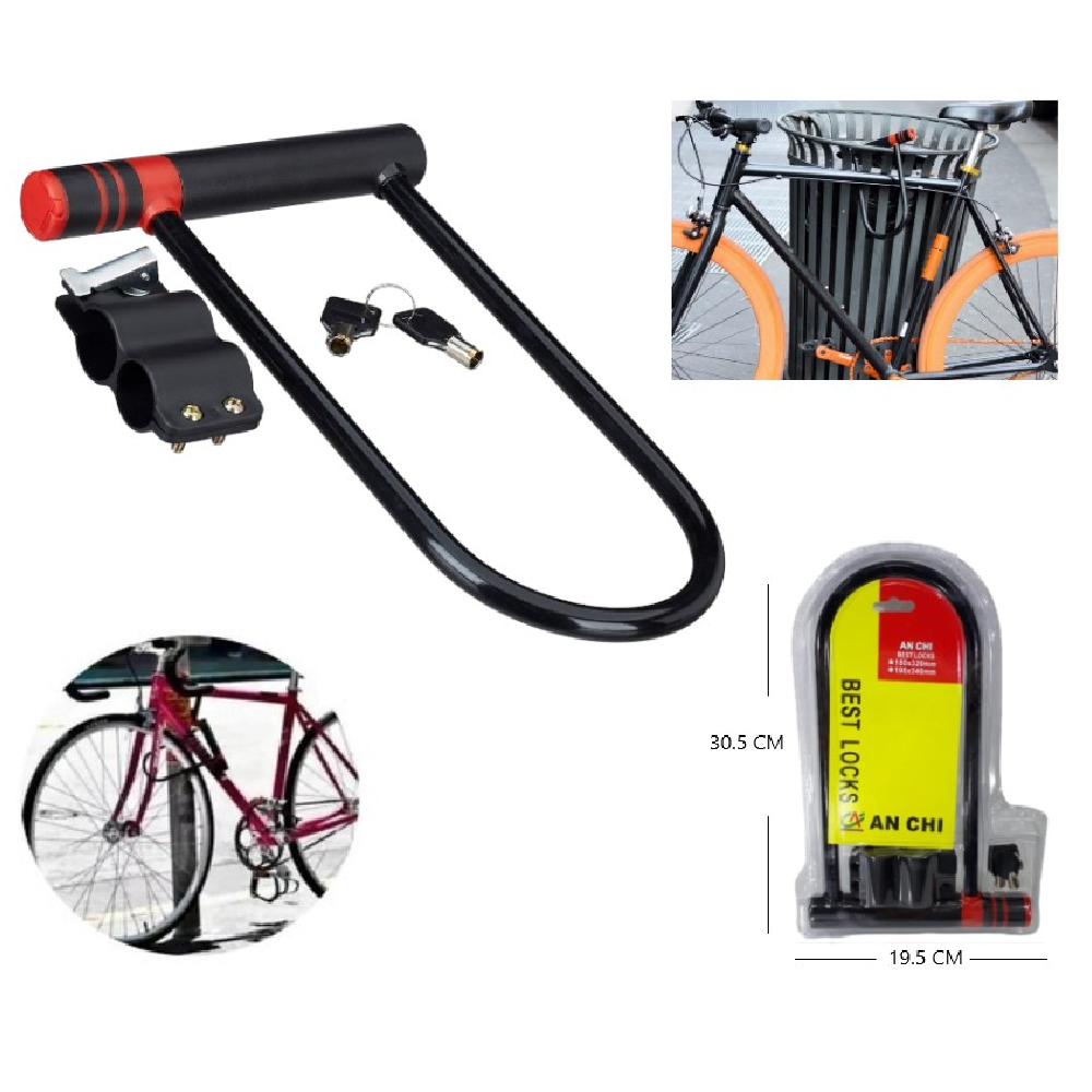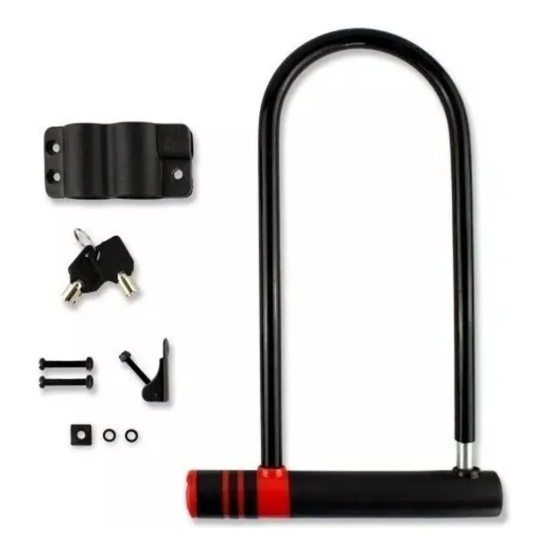 Candado de seguridad tipo herradura con soporte atornillable. Ideal para bicicletas y motos.