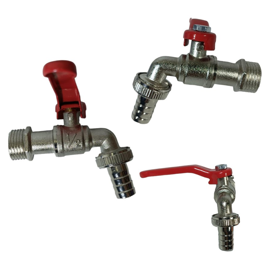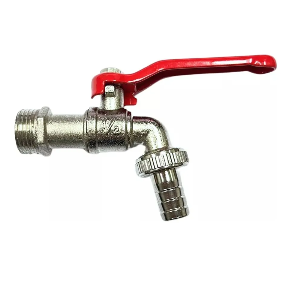 Tipo de válvula: esférica con manga de 1/2. Cuerpo recubierto de níquel. Manija de acero cromado cubierta de PVC, con una tuerca de bronce cromando. Con conector de salida para ensamblar manguera. Cierre de media vuelta tipo "palanca".