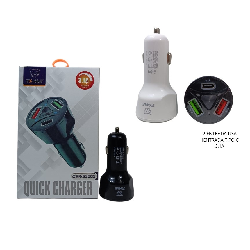 Cargador para auto de carga rápida 55w para celulares, con tecnología QC3.0. Interfaz múltiple: USB QC3.0 + tipo C + USB 2.0. Permite la carga simultánea con un chip de gestión incorporado que optimiza la carga rápida sin dañar el dispositivo. Fabricado en aleación de aluminio. Cuenta con protección de seguridad. Entrada de voltaje amplio de 12v/24v. Amplia compatibilidad.