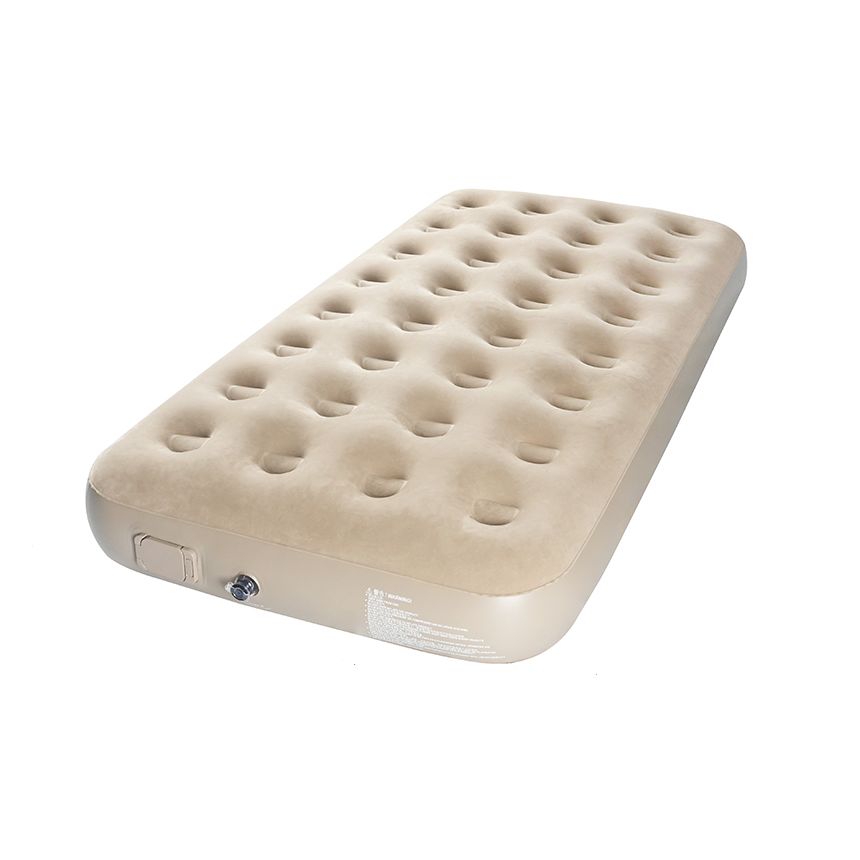 Colchón de aire portátil. Cuenta con una bomba recargable incorporada que se infla en solo minutos, lo que ofrece un montaje rápido. Su diseño de columna hexagonal y el PVC multicapa a prueba de pinchazos aseguran durabilidad y comodidad. Incluye bolsa de almacenamiento que facilita su transporte. De tejido flocado suave. Material antifugas de aire.