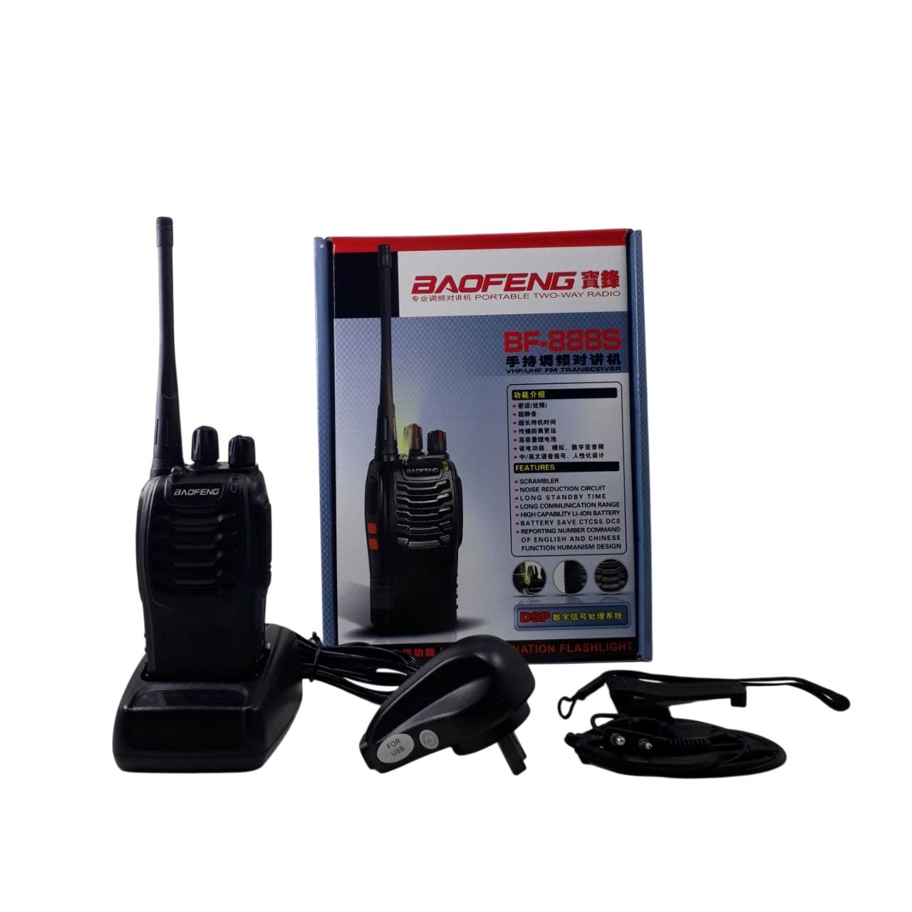 Handy con antena de radio móvil. 16 canales UHF. Batería de 1500 mAh. Potencia: 5w. Alcance máximo de 10 km. Frecuencia: 400-470 MHz. Cuenta con antena desmontable. Incluye batería recargable Li-ion de larga duración. El kit cuenta con auriculares manos libres, clip sujetador y correa.
