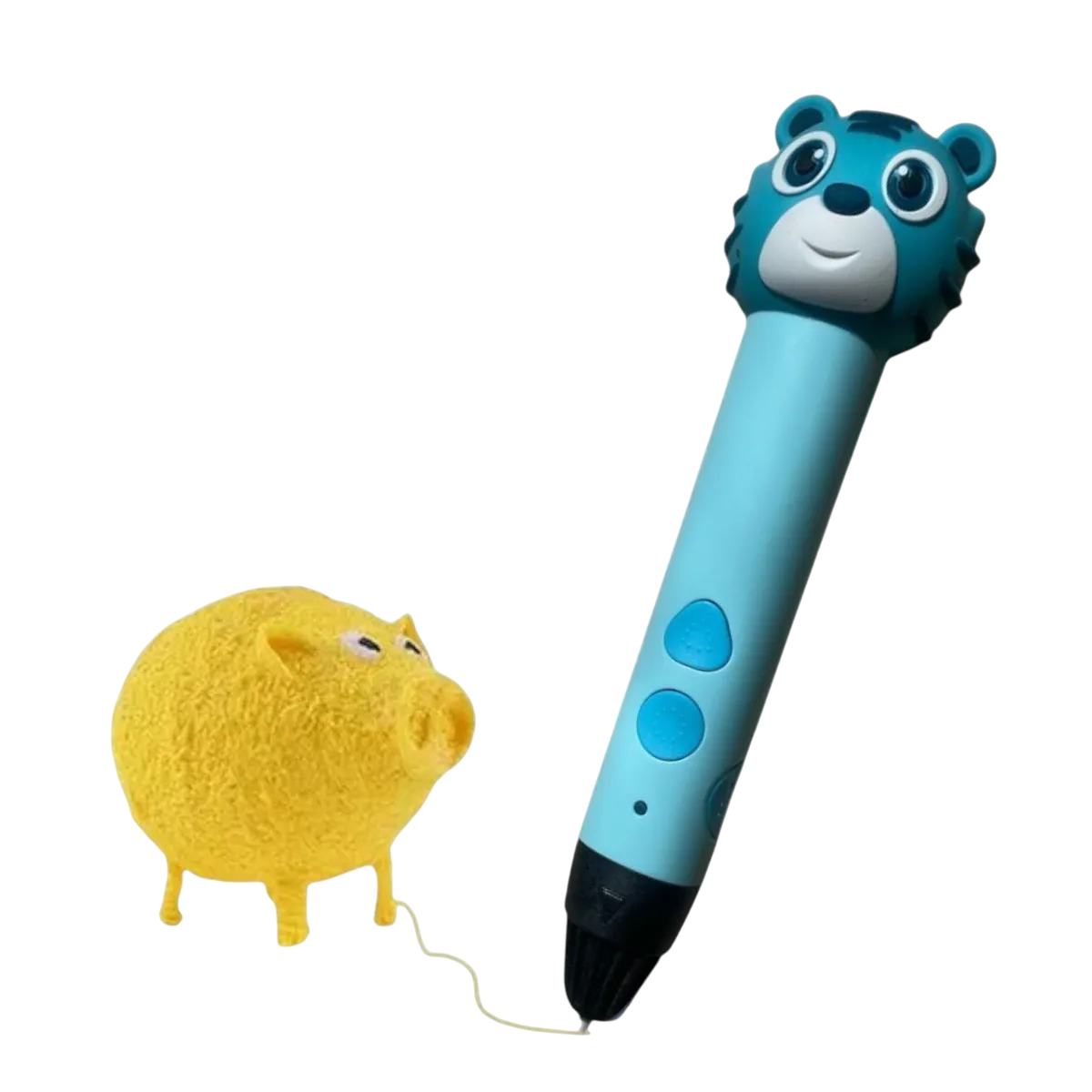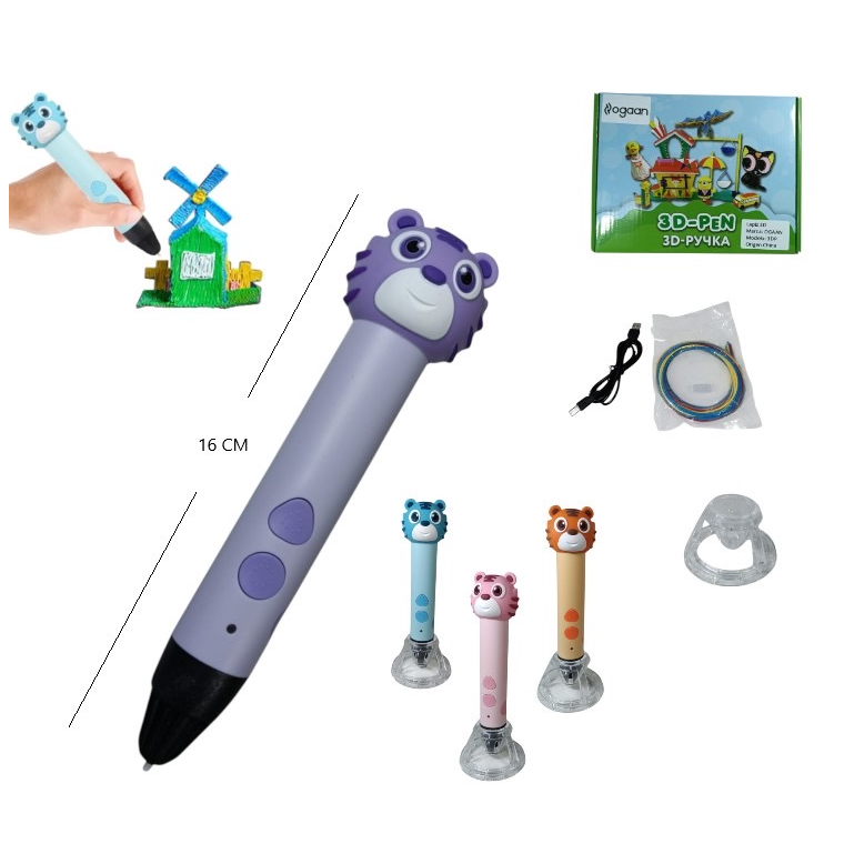 Lápiz impresora 3D recargable con diseño de tigre. Permite crear figuras tridimensionales utilizando filamentos PLA (material no tóxico). Luz LED indicadora. Cuenta con base de apoyo. Incluye boquilla con protección térmica. Recargable por USB (cable incluido). Diseño ergonómico. En varios colores.