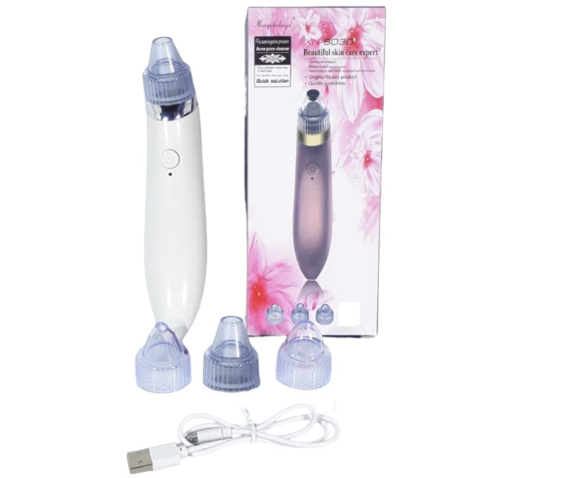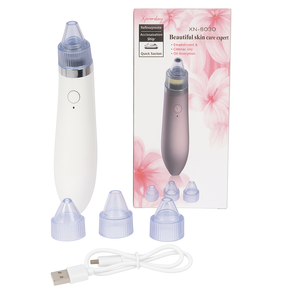 Dispositivo facial con tecnología de succión al vacío que elimina puntos negros y espinillas. Cuenta con cuatro cabezales intercambiables para adaptar la limpieza a diferentes zonas del rostro.