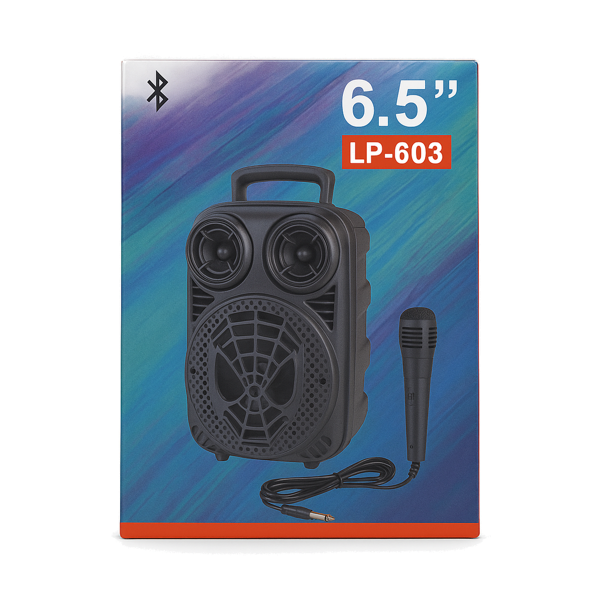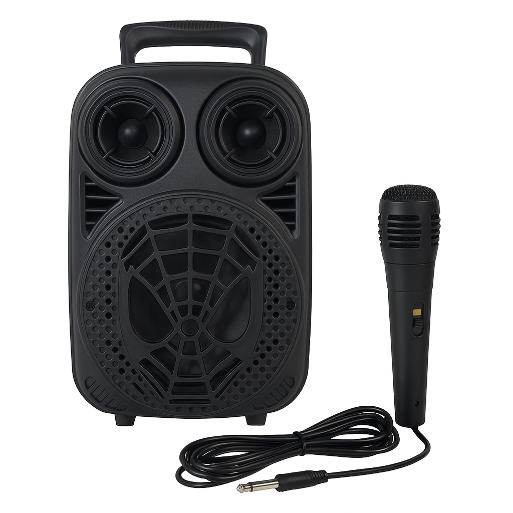 Incluye micrófono y luz LED frontal. Medidas: 28x20x13 cm