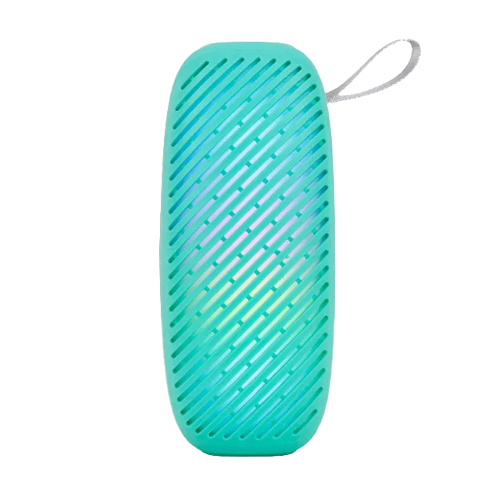Parlante inalámbrico con conectividad bluetooth. Conexión de hasta 10 metros de distancia. Cuenta con luces LED RGB. Volumen y control de iluminación ajustable. Batería recargable por medio de USB (cable incluido). Diseño portátil. En varios colores.
