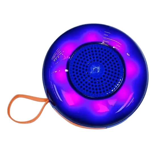 Parlante bluetooth con luces LED. Cuenta con radio FM. Función rítmica. Batería recargable por medio de USB. Apto para pendrive.