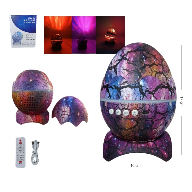 Proyector y parlante bluetooth con luces LED RGB (8 opciones de colores). Cuenta con una proyección dinámica giratoria de una rotación de 360°. Brillo y sonido regulable. Incluye control. Tipo de alimentación USB (cable incluido).