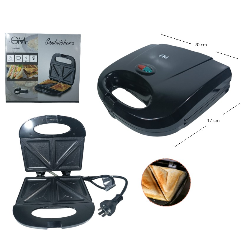 Sandwichera eléctrica. 750w de potencia. Cubierta antiadherente. Capacidad de sandwiches: 2.