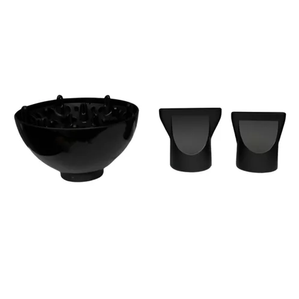 Secador de pelo Hytoshy con potencia de 2000W. El modelo cuenta con dos velocidades y la opción de aire frio. Incluye los accesorios mostrados en la publicación.