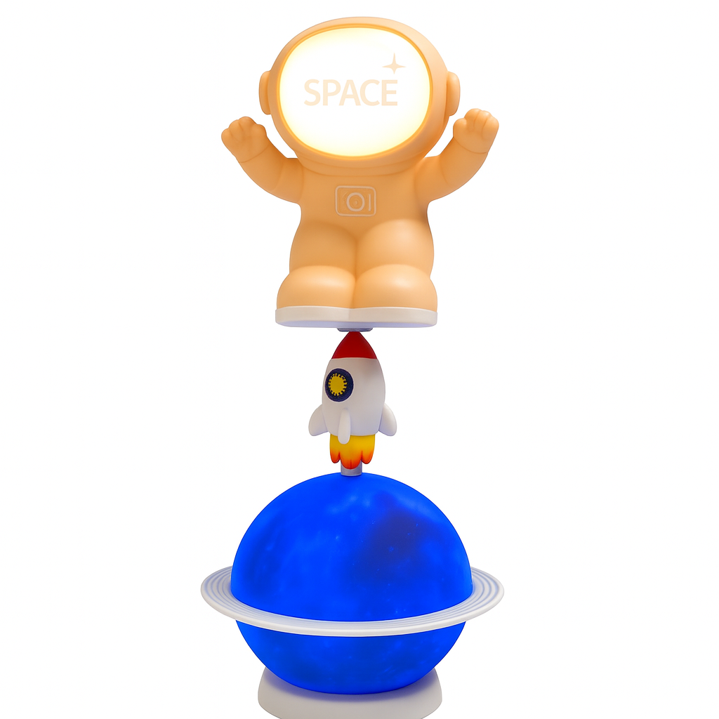 Transforma cualquier habitación en un espacio mágico con la Lámpara Proyector Astronauta 2 en 1.Su diseño único combina una luz nocturna colorida con efecto galaxia y una lámpara de escritorio funcional, ideal para niños y adultos. Perfecta para crear un ambiente relajante, decorar habitaciones o acompañar tus noches con un espectáculo de luces estelares.